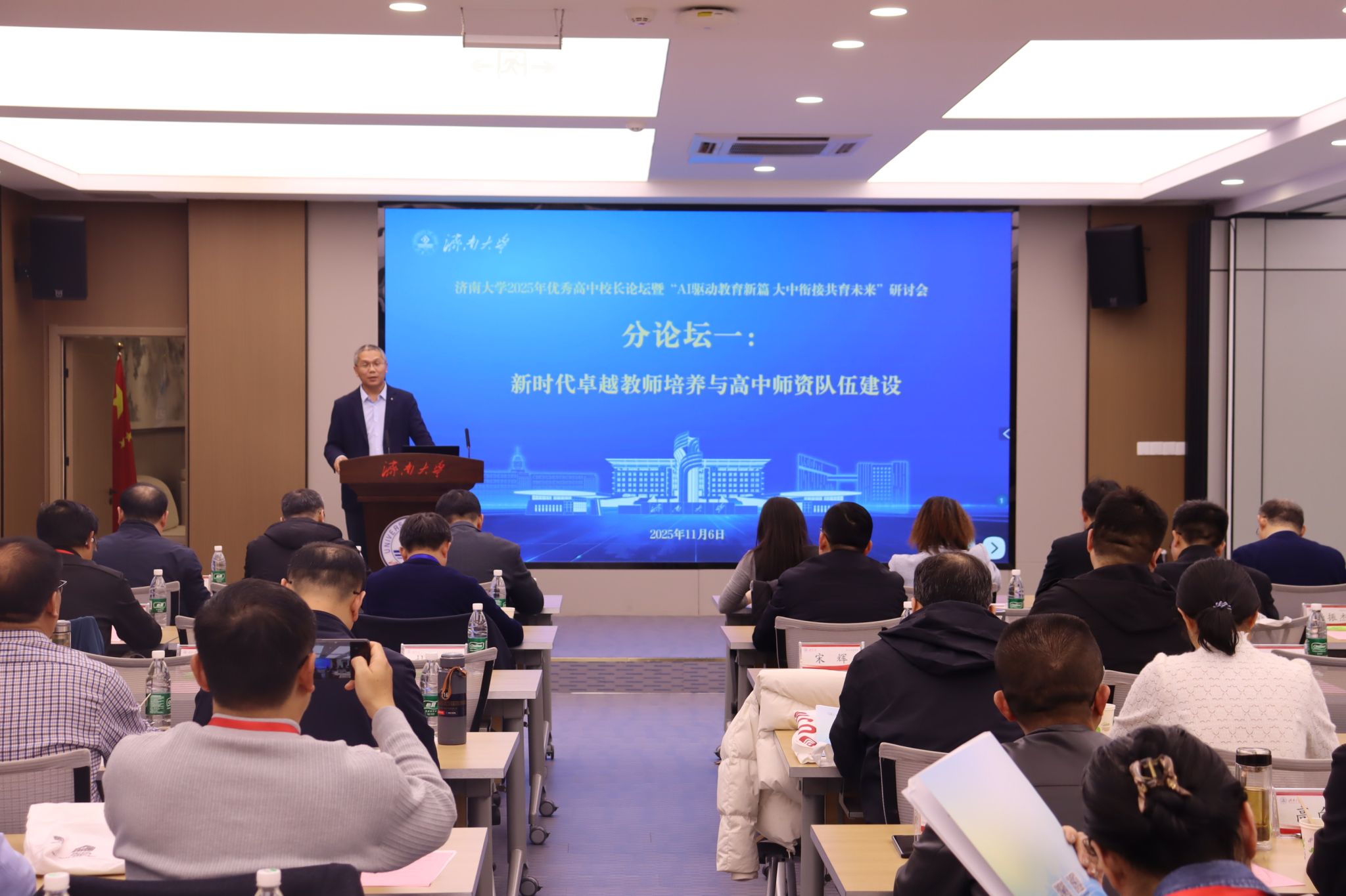 莱芜一中党委副书记、校长丁兆华作报告